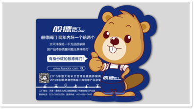 般德吉祥物選用能夠通過辛勤勞動改善自然生態環境的動物河貍,卡通河貍左手掐腰右手持贊動作,河貍主色為淺棕色,服裝為藍色工裝印有般德閥門logo,突出品牌。體現品牌自信且給人放心。