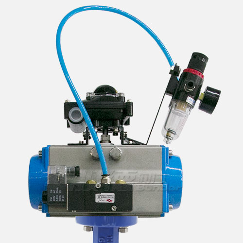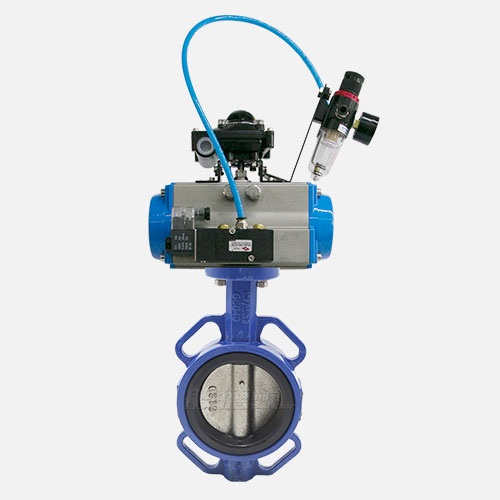 般德閥門公司生產的D671X-16對夾氣動蝶閥(帶三聯件),在對夾蝶閥上面配上氣動執行器。它的優點在于,氣動執行器的執行速度相對較快,不需要工人親力親為,很大程度上節約了人力資源和時間。氣動對夾蝶閥可用于現場要求空間比較窄、管道距離較短的場合。蝶閥體內無連桿、螺栓等、工作可靠、使用壽命長,可以多工位安裝,不受介質流向影響。D671X寬邊對夾氣動蝶閥廣泛地應用到冶金、電力、石油、化工、空氣以及給排水等腐蝕性介質的管道上,是調節流量和截斷流體的裝置。