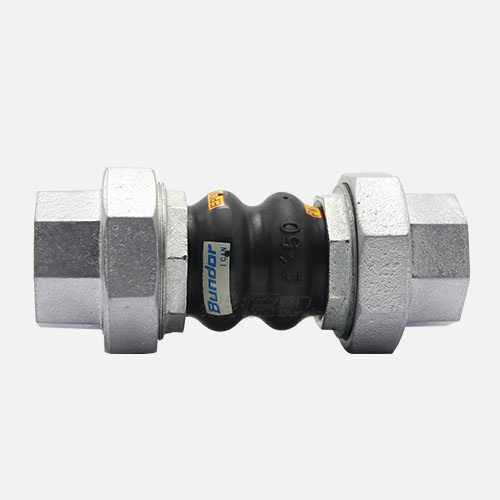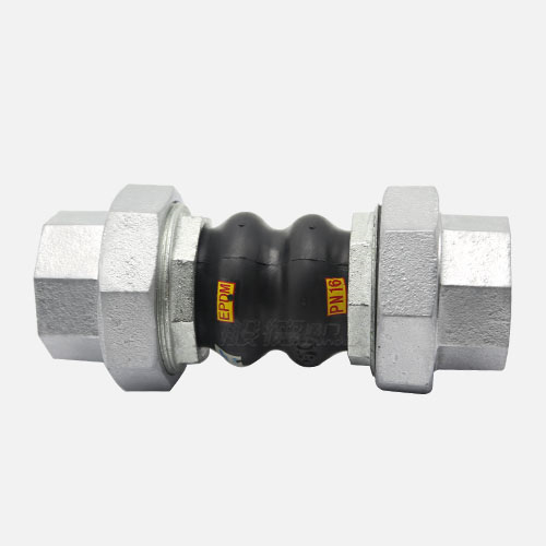 JGD-B型絲扣連接橡膠接頭由內層、增強層,外膠層復合模型硫化成型的橡膠雙球和金屬平行活接頭組成。產品耐壓高,彈力足,位移變形量大,減震又降噪,絲扣連接又稱螺紋連接,它是通過內外螺紋把管道與管道、管道與閥門連接起來的一種管道配件。這種連接主要用于鋼管、銅管和高壓的連接,焊接鋼管的螺紋日前大部分采用套螺紋機操作,而對于螺紋加工精度和表面粗糙度要求很高的高壓管道都必須用車床加下。該產品可廣泛用于賓館、工廠、住宅區的水暖管道系統以及循環管系統,衛生管道、化學防腐和冷凍管道等。