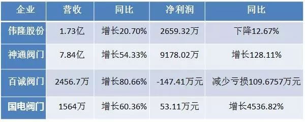 從四家閥門行業的半年報來看,四家閥門企業都實現了業績的快速增長。