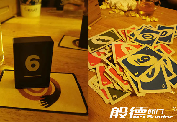 幾局刺激的狼人殺過后,大家開始玩“UNO”,這是一個新的桌游,工作人員為大家講了游戲規則之后,大家就開始自由“廝殺”,看誰手里的牌先出完,眼看著手里只剩一張牌了,轉眼又成了一把,大家笑聲連連,一局游戲玩了半個多小時才結束。