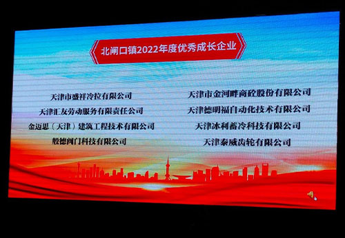 會議向2022年為天津市津南區北閘口鎮經濟社會發展做出貢獻的企業表示感謝,般德閥門榮獲“2022年度優秀成長企業”稱號。