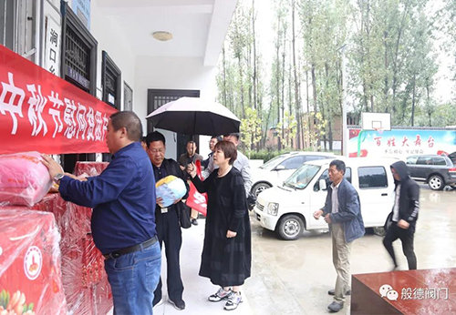 2018年9月19日,般德閥門作為洛陽市鄭州商會會長企業, 與商會其他公司代表一起,冒雨綿密的秋雨,到洛寧縣澗口鄉看望寺上村的鄉親,為他們送去中秋祝福。