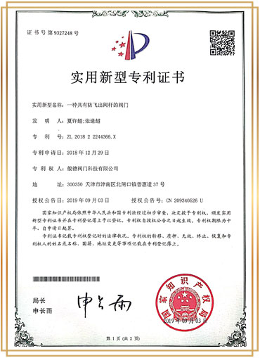 般德閥門專利防飛出閥桿結構,能防止因流體介質的壓力太大導致閥桿脫離飛出,增加閥門的安全可靠性。