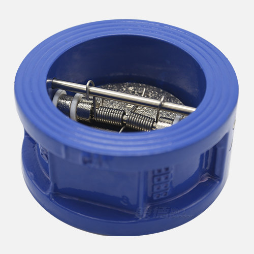 蝶式止回閥由閥體、閥瓣、閥桿、扭簧和橡膠密封圈組成,蝶式閥瓣在流體壓力作用下開啟,流體從進口端流向出口端,當進口段壓力低于出口端時,閥瓣在流體壓差和扭簧的作用下自動關閉,起到了防止液體倒流的作用。該閥門主要用于消防、石化、輕紡、造紙以及高層建筑等行業給排水管網井或水泵出口處,是水泵停機時防止管路介質倒流壓差,形成水錘沖擊,水泵倒轉的安全裝置。